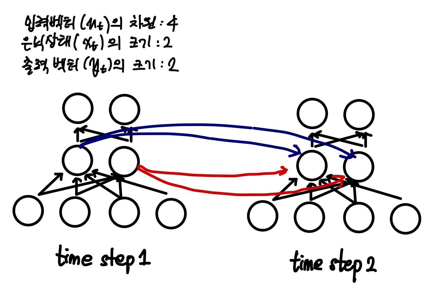 - 최종적으로는 (4) 식을 통해 현 시점의 hidden state 값을 구할 수 있음.